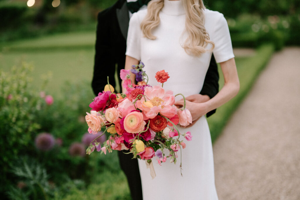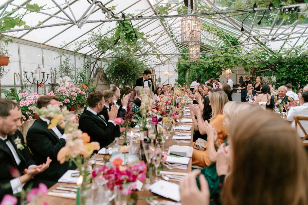 The gardens were bursting with colour, and the green house was brought to life by stunning floral arrangements from Hortus Poeticus. Guests wandered through the grounds, drinks in hand, soaking up the setting before the evening celebrations began. It was the kind of day that felt effortless – full of warmth, laughter and thoughtful details – and a perfect example of how special a Hampshire wedding at West Green House Gardens can be.